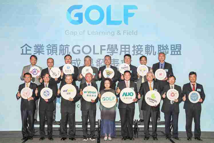 GOLF学用接轨联盟集结企业和学校的力量,,,,打造「学用合一、、产学接轨」的创新合作平台 (前排左起:淡江大学副校长何启东、、元智大学校长林启瑞、、、、纬育执行长许延岳、、、纬创总经理暨执行长黄柏漙、、、教育部政务次长范巽绿、、、龙门国际董事长暨执行长彭双浪、、、、仁宝总经理暨执行长翁宗斌、、、、大同大学校长何明果、、、圣约翰科大校长艾和昌;后排左起:明新科大校长林启瑞、、龙华科大校长葛自祥、、台湾科大校长廖庆荣、、中兴大学副校长郑政峯、、、、中央大学校长周景扬、、、台北科大副校长任贻均、、中华科大副校长石大明、、、明志科大校长刘祖华)